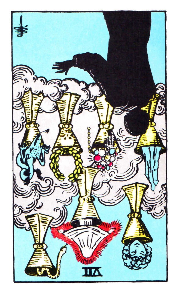 The cups contain a variety of symbols, each representing different desires, temptations, and aspirations: